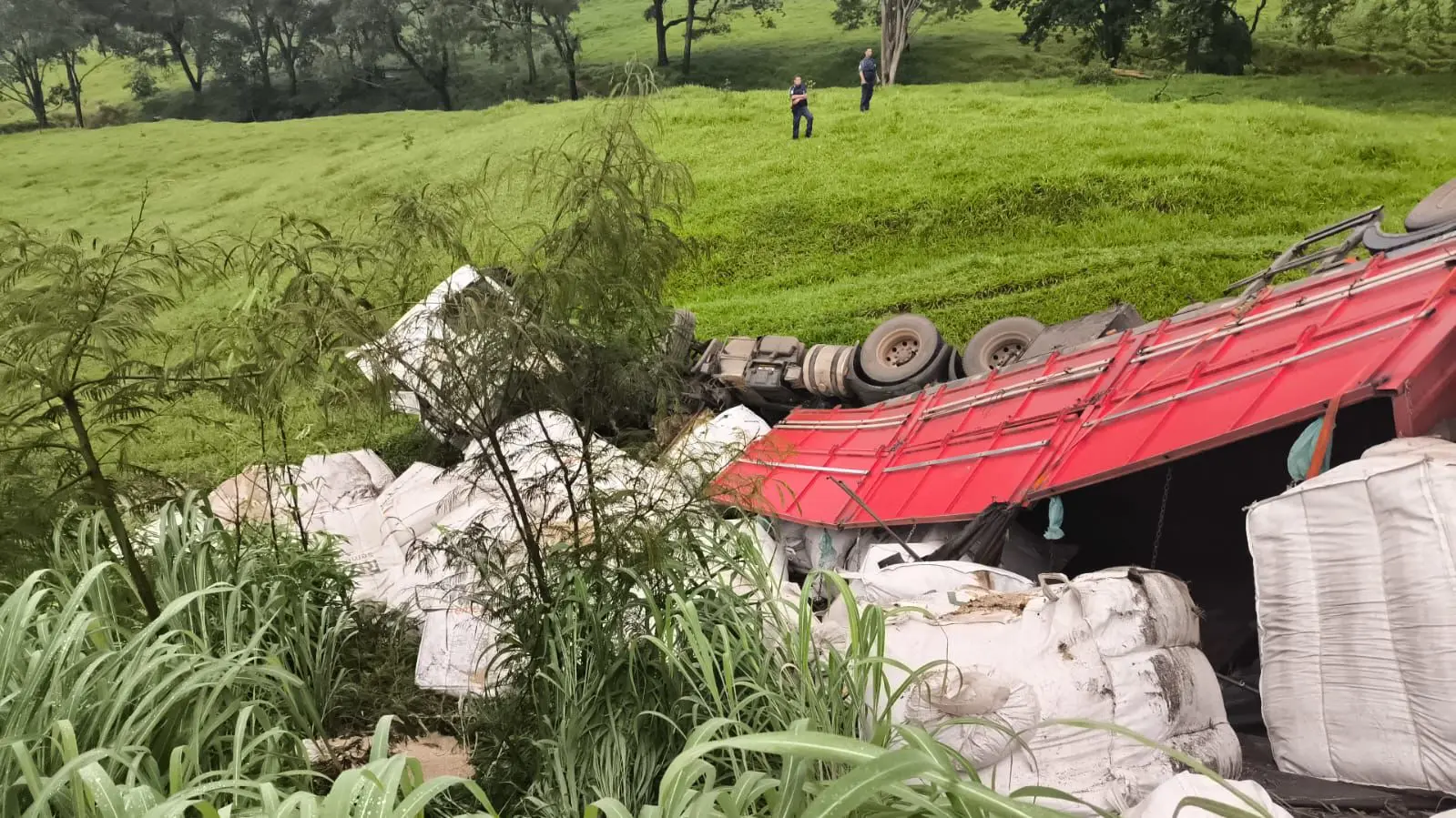 De acordo com informações preliminares apuradas no local, o caminhão-tanque se acidentou inicialmente de forma isolada, sem envolvimento de outros veículos, ocasionando retenção no tráfego. Na sequência, o caminhão que transportava sementes de grama colidiu com o carro-forte, lançando-o para fora da pista. Em seguida, o caminhão tombou sobre o VW/Gol, que ocupava a faixa de rolamento, saindo também da pista.