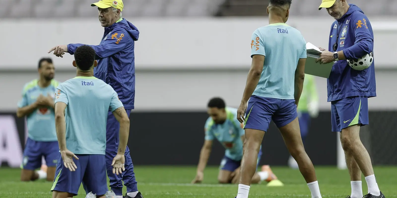 Na última atividade antes da partida, nesta quinta-feira (9), o técnico italiano Carlo Ancelotti voltou a armar a equipe no esquema 4-2-4 com um quarteto ofensivo formado por Estêvão, Matheus Cunha, Vinicius Júnior e Rodrygo. A única novidade em relação ao time formado na última quarta (8) foi a entrada de Bruno Guimarães no lugar de Lucas Paquetá.