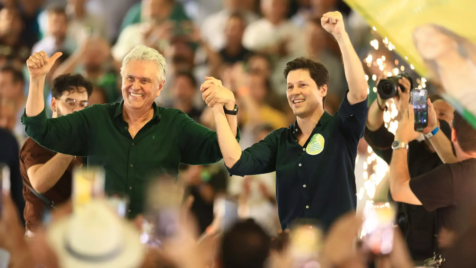 Ao lado de 209 prefeitos, centenas de lideranças políticas estaduais e nacionais, e milhares de apoiadores, o governador Ronaldo Caiado (PSD) lançou as pré-candidaturas da chapa da base governista em Jaraguá, que se tornou a “capital política” do estado neste sábado, 14. O ato marcou o lançamento da pré-candidatura do vice-governador Daniel Vilela (MDB) ao governo nas eleições de outubro.