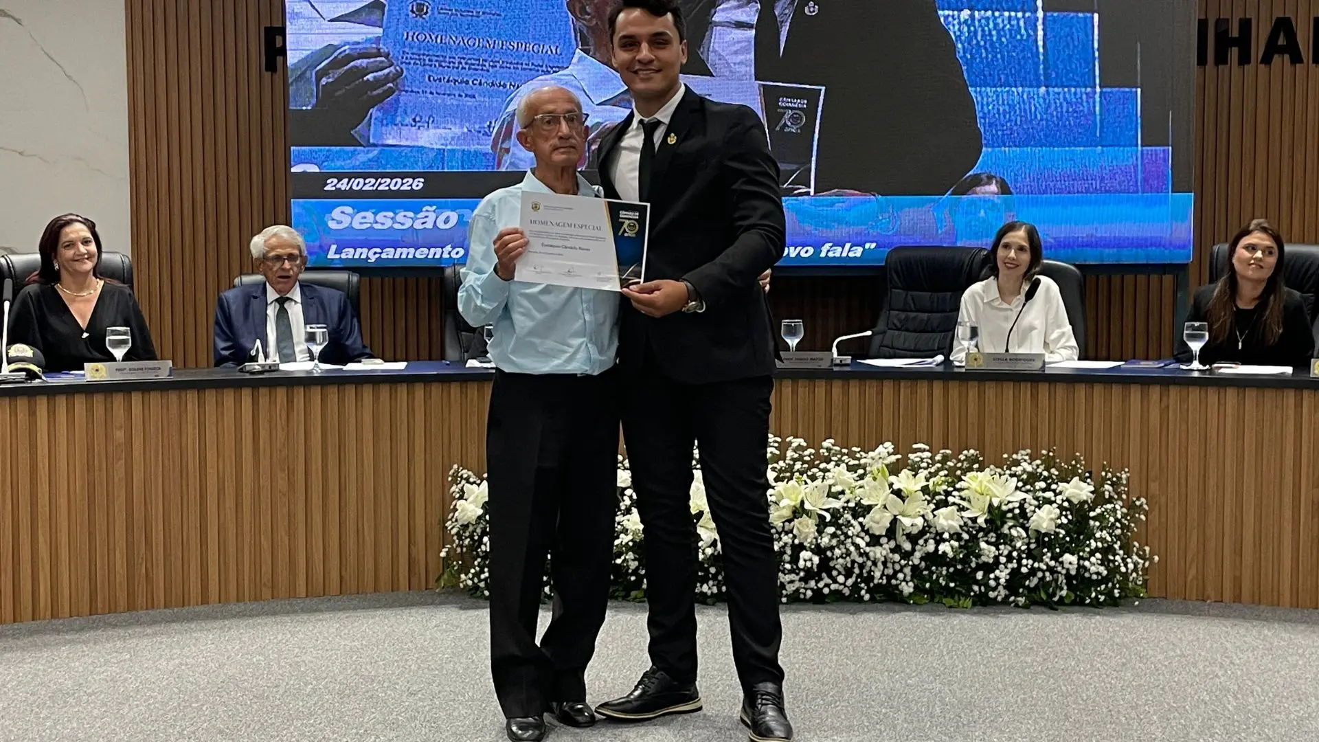 Mas a noite não parou por aí. A estreia do documentário “Onde o Povo Fala”, dirigido por Orcedino Júnior, emocionou a todos com a rica história dos 70 anos da Câmara Municipal. As imagens e depoimentos contados no filme certamente ficarão na memória de quem esteve presente.