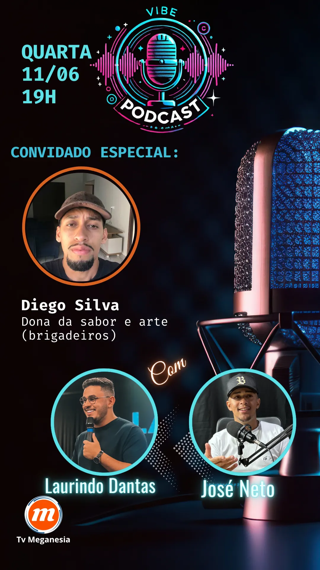 O Vibe Podcast, transmitido pela TV Meganésia, promete mais um episódio inspirador nesta quarta-feira, 11, às 19h00, com a participação AO VIVO e especial de Diego Silva, empreendedor por trás da marca Sabor e Arte (brigadeiros). Ao lado dos anfitriões Laurindo Dantas e José Neto, Diego contará sua trajetória no ramo da confeitaria artesanal e como transformou seu talento em um negócio promissor.