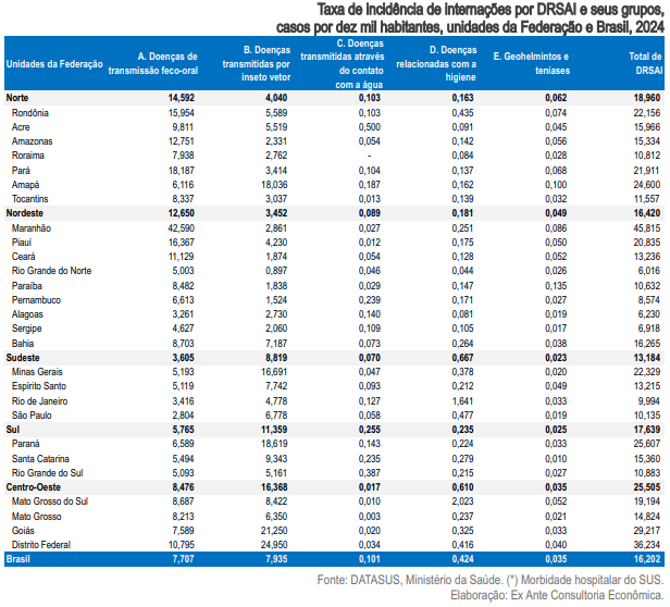 O Maranhão e o Distrito Federal são as unidades da federação em pior situação quanto a internações por doenças relacionadas ao saneamento ambiental inadequado, a cada 10 mil habitantes. Enquanto o estado nordestino conta com uma taxa de incidência nesse recorte de 45,8 casos, no DF o número chega a 36,2.