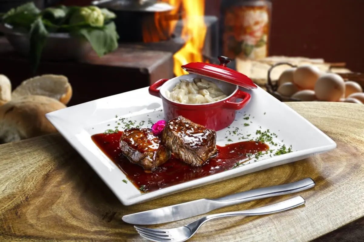 Em um recipiente, tempere os medalhões com sal, pimenta-do-reino e alecrim. Em seguida, passe a mão sobre a carne e diga: “que este alimento fortifique minha presença e minha estrada”. Após, aqueça uma panela com manteiga e sele os medalhões com alho. Acrescente o vinho tinto e as folhas de louro (representando três caminhos abertos). Deixe reduzir até obter um molho espesso e brilhante. Finalize com um fio de mel para trazer equilíbrio entre força e doçura. Sirva em seguida.