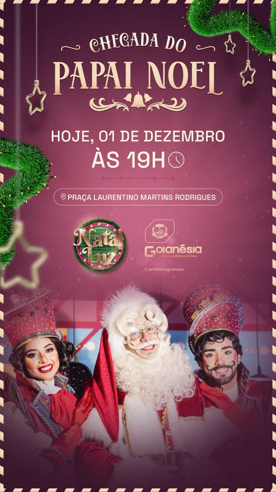 O clima natalino já tomou conta de Goianésia, e nesta segunda-feira, 01, acontecerá a aguardada chegada do Papai Noel, a partir das 19h00, na Praça Laurentino Martins Rodrigues.