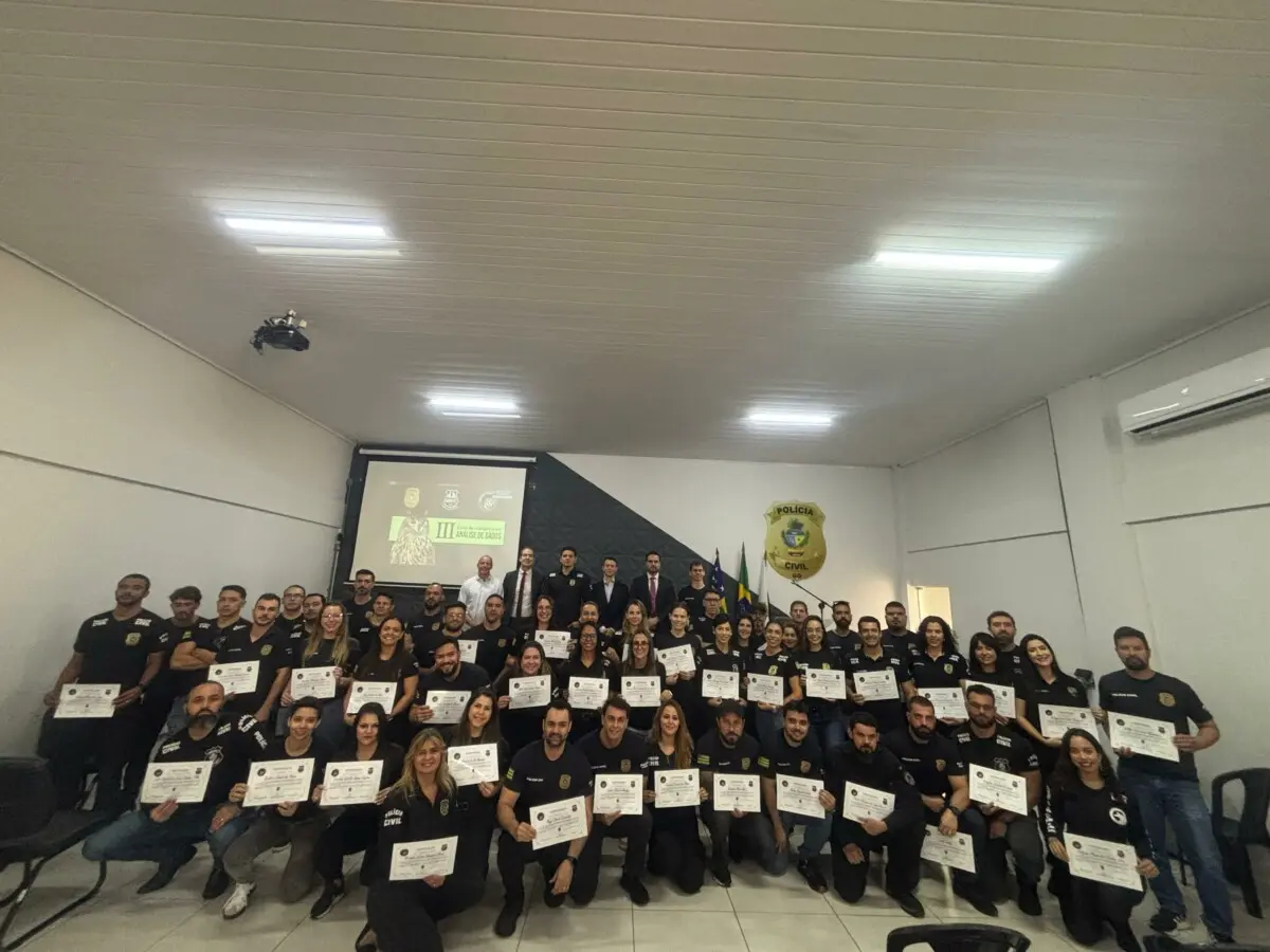 A Polícia Civil de Goiás realizou nesta sexta-feira (05) a cerimônia de encerramento do 3º Curso de Inteligência em Análise de Dados (CIAD). Cerca de 51 policiais civis realizaram o curso e se formaram agora. O curso aborda vários temas, entre eles extração de dados, manejo de criptoativos e também afastamento de sigilo bancário e telefônico. A formação de delegados, agentes, escrivães e papiloscopistas no 3º CIAD foi realizada pela Escola Superior da Polícia Civil (ESPC). Na cerimônia de encerramento, estiveram presentes: o Gerente de Planejamento Operacional (GPO), Rodrigo Mendes; o superintendente de Inteligência Policial Civil, Gustavo Rigo; o Gerente de Operações de Inteligência, Fábio Meireles; o Gerente de Inteligência de Sinais e Laboratório de Tecnologia contra a Lavagem de Dinheiro, Vytautas Fabiano Silva Zumas; o Superintendente de Correições e Disciplina, Thiago Damasceno; o Superintendente de Combate à Corrupção, Davi Freire, entre outras autoridades e convidados.
